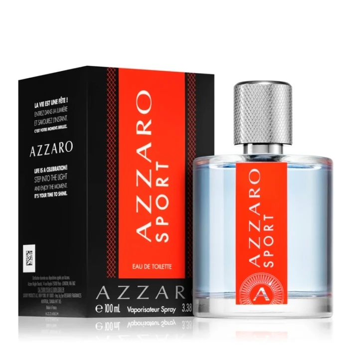 El frasco de Azzaro Sport Eau de Toilette es masculino y robusto con líneas redondeadas puras y sencillas donde deja entrever su exquisito jugo. Lo viste una banda roja vertical que ensalza la firma e inspira energía y vitalidad. Su tapón cilindro metalizado está grabado y representa la fortaleza evocando la sensualidad y energía de un hombre seguro de sí mismo.