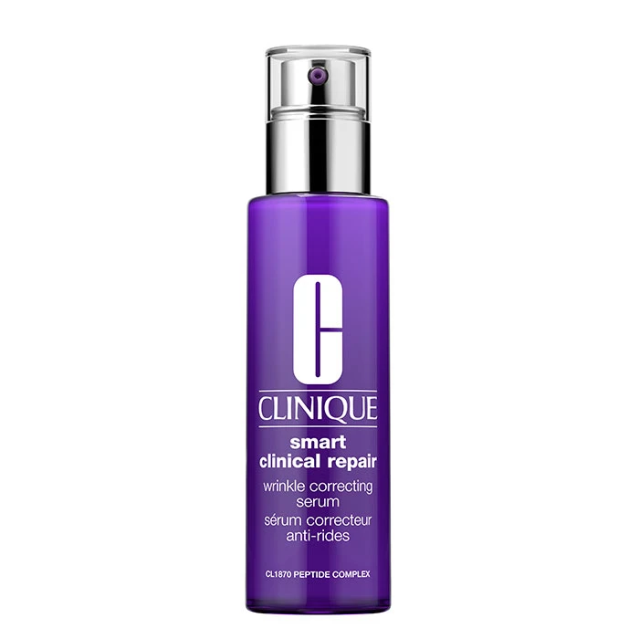 Además la formulación de Clinique Smart Clinical Repair Wrinkle Correcting Serum contiene Tripéptido-1 de palmitoilo, Acetil hexapéptido-8, Palmitoil tetrapéptido-7 y una combinación óptima de cafeína y extracto de algas para ayudar a minimizar la irritación. Libre de aceite, alcohol desnaturalizado, SLS, SLES y sulfatos. No contiene parabenos, ftalatos ni fragancia. Indicado para todo tipo de pieles.