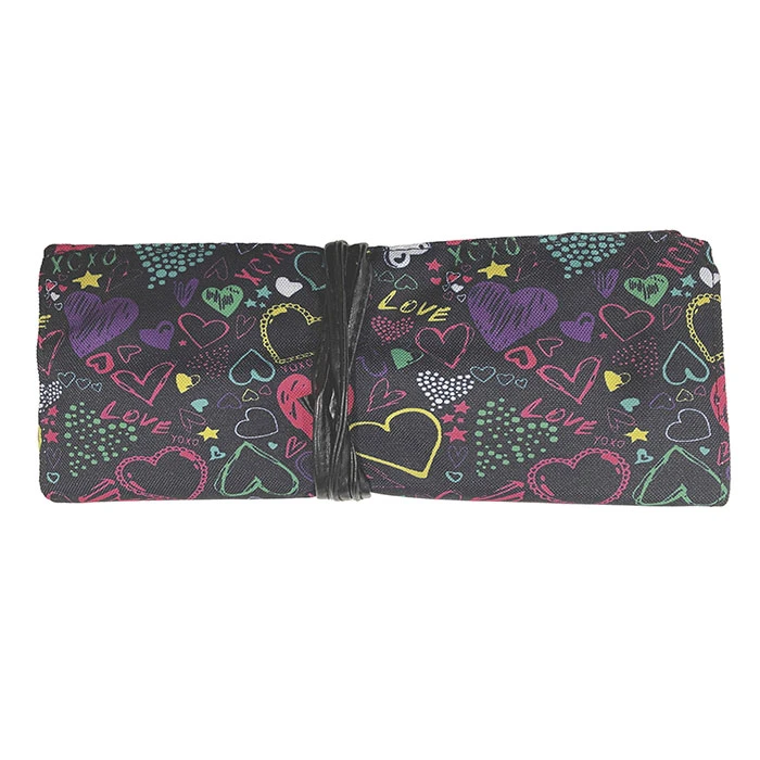Manta de Maquillaje Corazones de Romeo & Julieta es una manta de 15 brochas y pinceles para maquillaje.