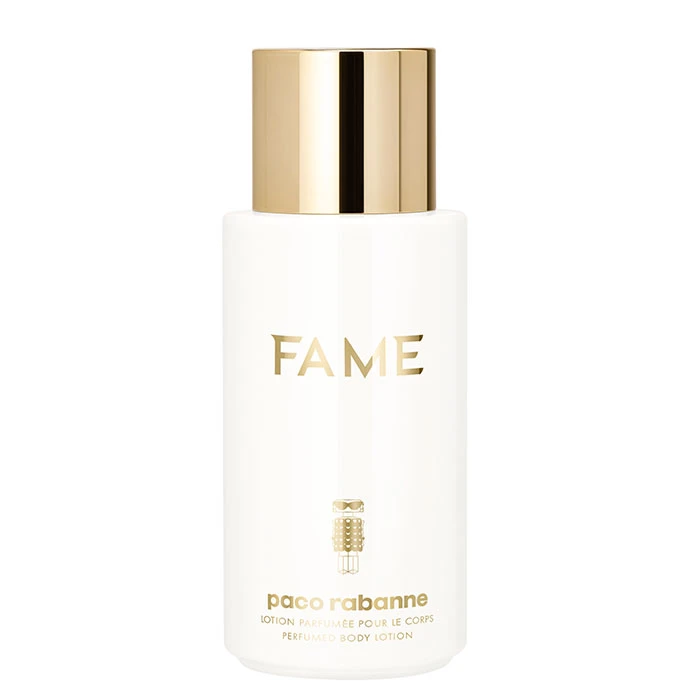 Fame Body Lotion de Paco Rabanne es una loción para el cuerpo que aporta hidratación profunda y experimenta la sensualidad y la feminidad de la fragancia Fame, dejando la piel perfumada y suave con un aroma de fresco jazmín, suculento mango y cremoso incienso.