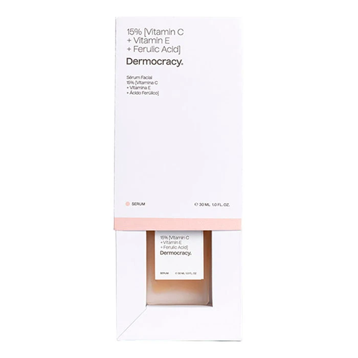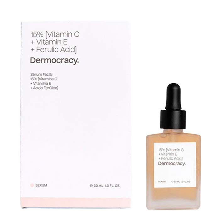Sérum 15% Vitamina C + Vitamina E + Ácido Ferúlico de Dermocrazy es un sérum que ilumina, corrige las manchas, trata las líneas de expresión y arrugas.