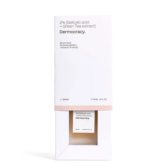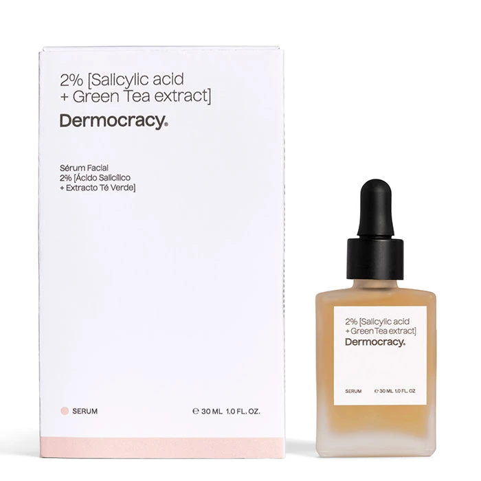 Sérum 2% Ácido Salicílico + Extracto de Té Verde de Dermocrazy es un sérum con acción antibacteriana y calmante, reduce la inflamación en pieles grasas o con acné.