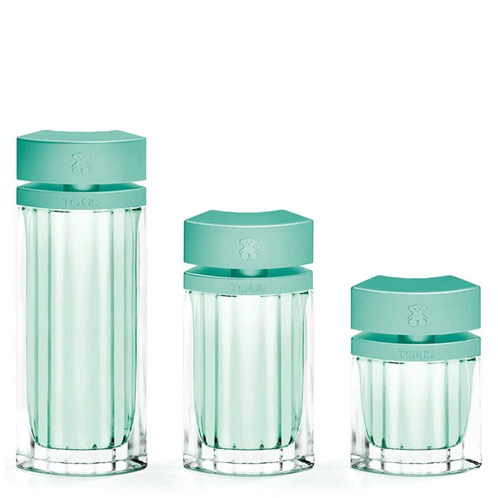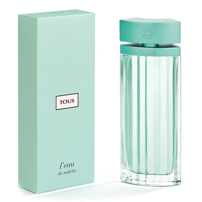 Jovial y lleno de vitalidad, el perfume Tous L’eau de toilette lo encontramos en un frasco de líneas rectas, que nos demuestra sencillez y naturalidad, en un tono verde aguamarina que lo distingue del resto de perfumes de la colección Tous L’eau. Todos ellos finalizados en metal por la parte superior del frasco, y en cuyo tapón vemos grabado el emblemático oso icono de la marca Tous.