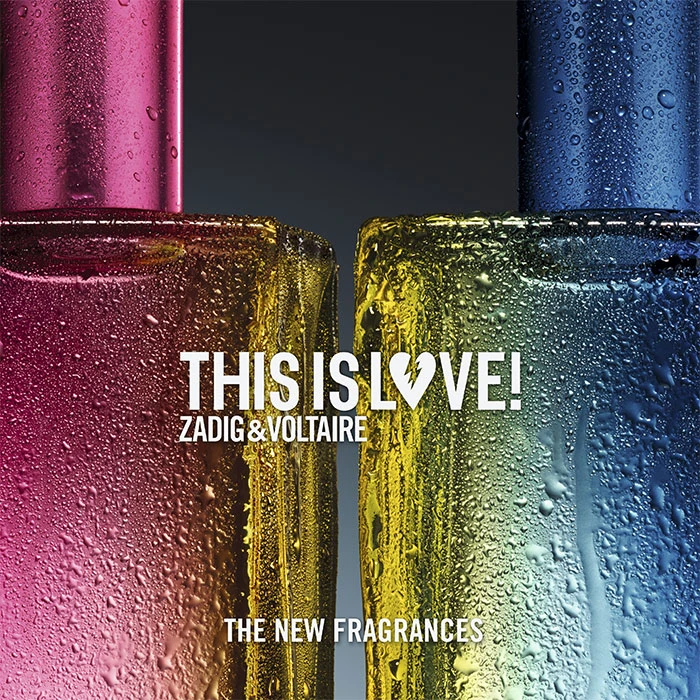 Zadig & Voltaire presentan en el año 2020 la pareja de perfumes para hombre y mujer This is Love! Cuentan una historia de amor a primera vista, amantes que se encuentran por primera vez en París. Una pareja moderna con una historia de amor desafiante entre beso y beso. Un amor libre en la que la piel es un lienzo en blanco sobre el que dibujan suavemente con los dedos. This is Love! Refleja un amor ardiente, indestructible y rebelde.
